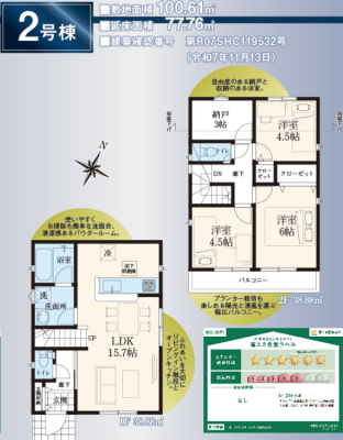 | 採光面 | 南 | 構造/階数 | 木造/地上2階建 |