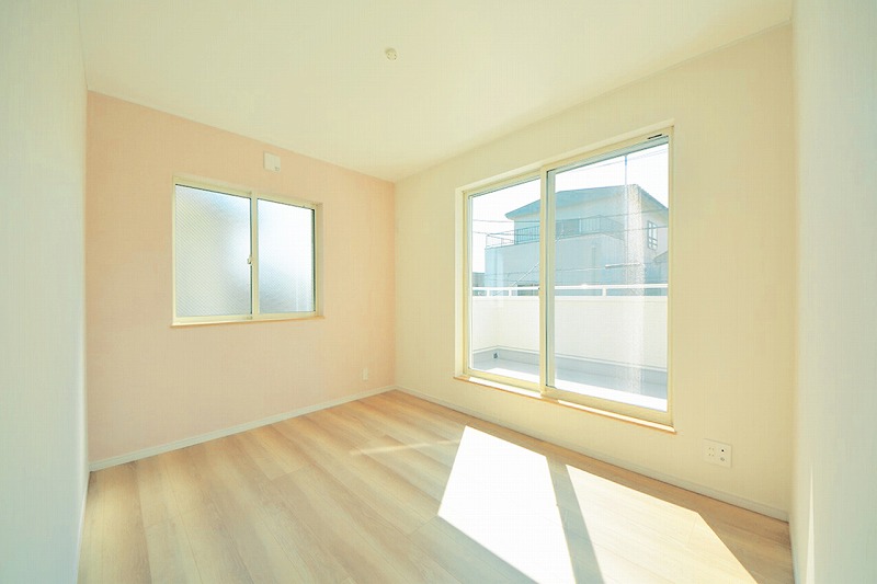 2階は、納戸にこだわりのレンガ調のアクセントクロス。居室はホワイトで統一されたシンプルで落ち着く空間になっています。