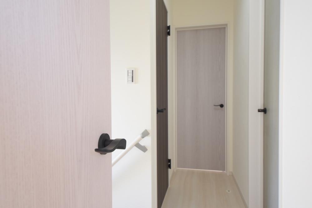 3世帯での生活を想定し、キッチン3カ所など各階に水廻りを豊富に設置しています。白・グレー・黒を基調としたシンプルでモダンなお家でありながら、 洗面室床面やパントリー壁面など一部に北欧風アクセントクロスを施工し、 細かなこだわりを感じられるオーダー住宅となりました。